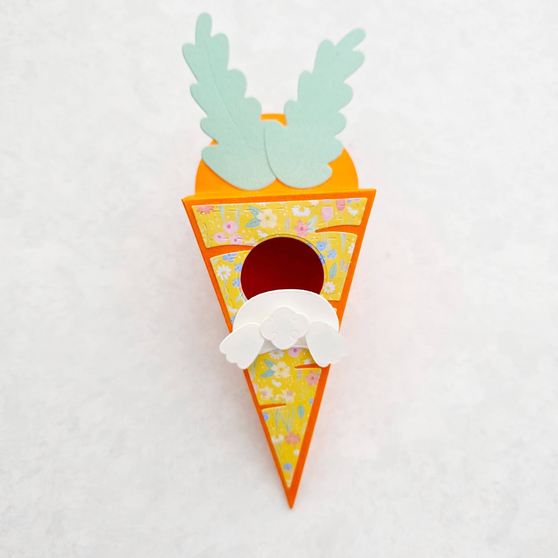 You can use this charming carrot box as a treat holder, making it perfect for tucking into Easter baskets or leaving on coworkers' desks.