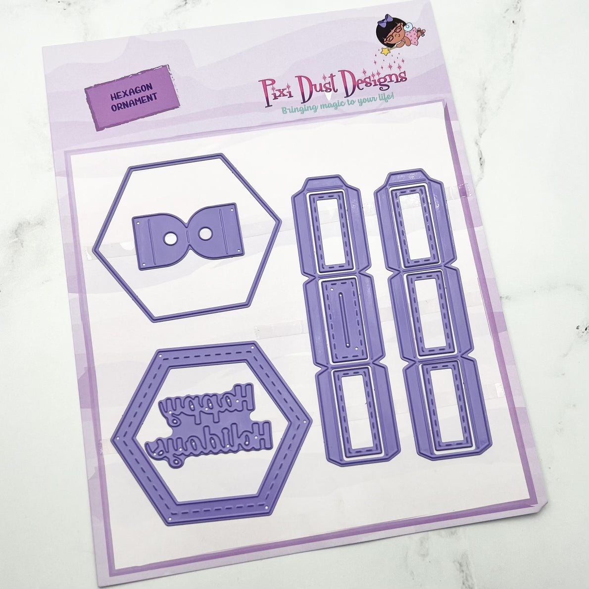 This versatile Hexagon Ornament die set is perfect! This set is great because you can pair this with the Hexagon Nativity Die set - sold separately or use this as a stand-alone treat box, or for other craft projects with any theme.