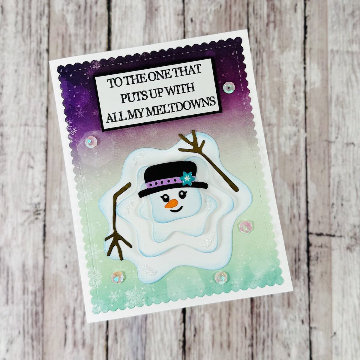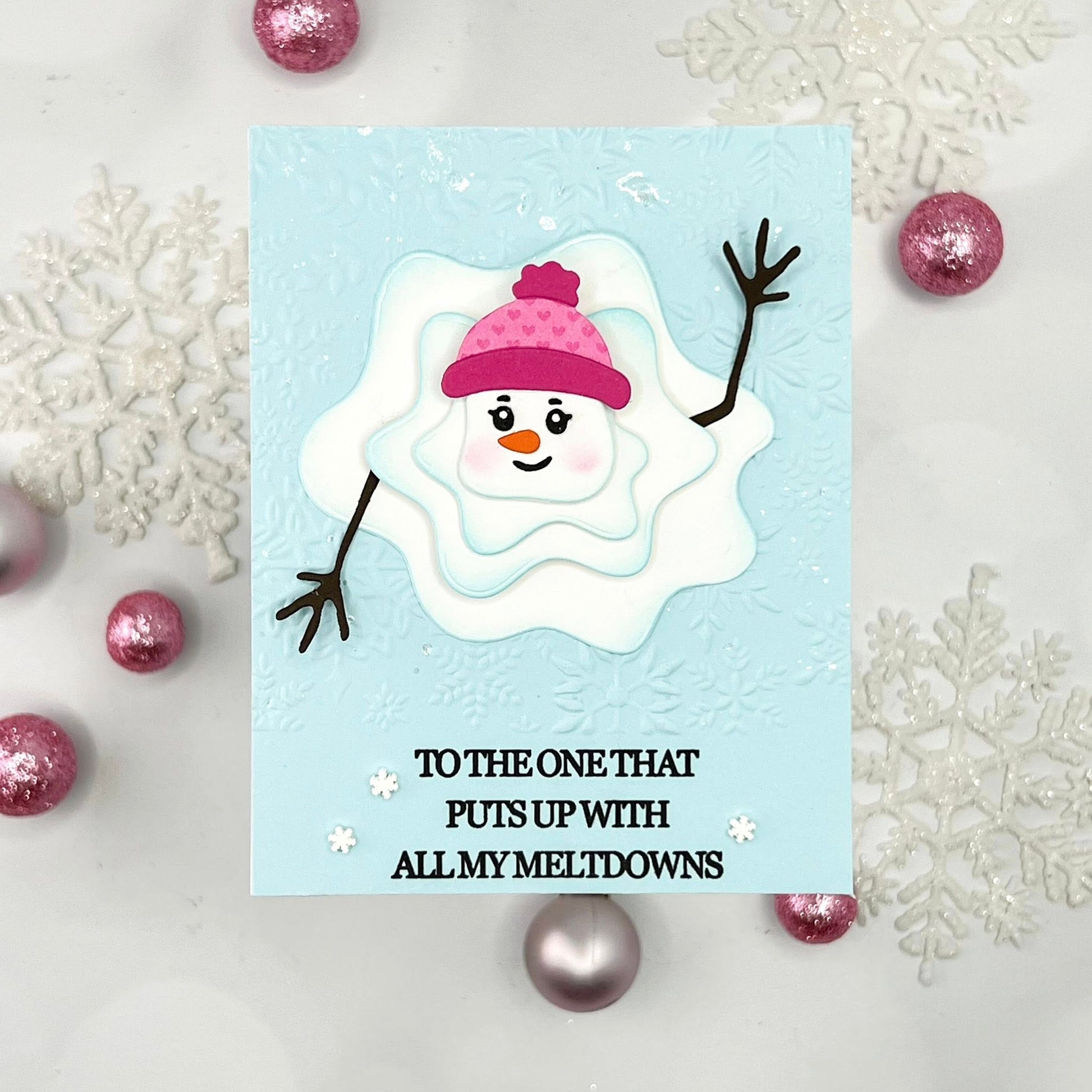 This will be the best meltdown you've ever had. This die set will bring joy to your paper crafts; who can resist a melted snowman? Get creative with inks and glitter, and be creative.