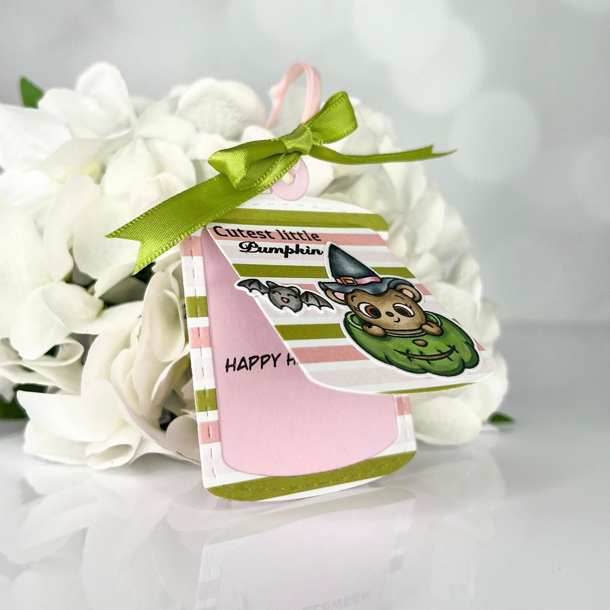 This die set includes a tag with a lift-up feature, perfect for shakers or adding secret sentiments.