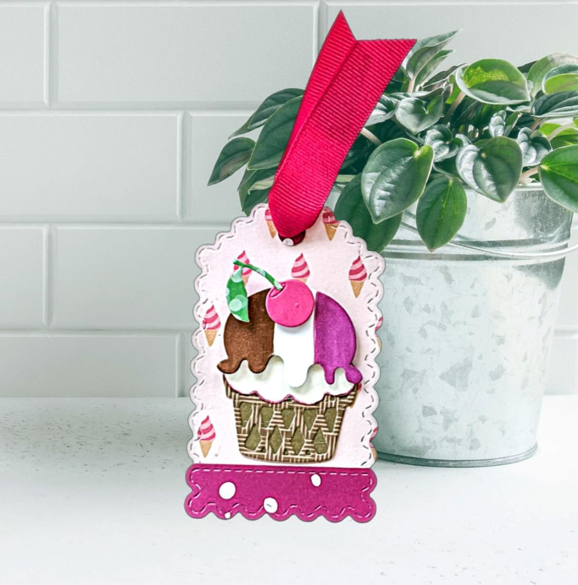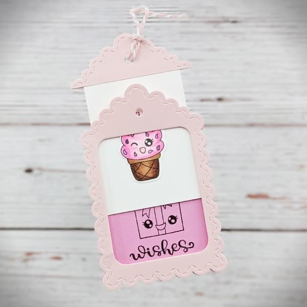 More tag fun with Tag D die set. This scalloped tag can become a shaker or used flat. It's a great addition to your other paper craft projects and used with the Tag Add-On die set you create a stand alone tag. Measures Approx 3.5" x 2.25"